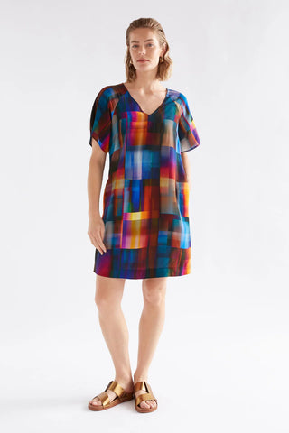 The Byde Short Dress is a playful, warm weather style with thoughtful details, in the vibrant Ekko Print. This V-neck dress features short tulip, raglan sleeves that elongate and flatter the arm, while still ensuring coverage. Crafted from an ECOVERO™ viscose blend that is lightweight and has a silky, floaty drape and matte sheen. Designed with a regular-fit bust that falls into a gentle A-line silhouette, finishing at the knee.