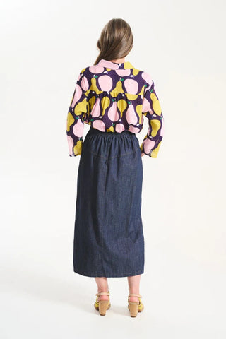 The Cardiff Skirt features a soft A-line silhouette with side splits for ease and movement. Deep front pockets add a touch of personality and practicality, while the elasticated back waistband ensures all-day comfort. Finishing at a flattering mid-calf length, this versatile skirt is a true wardrobe essential—perfect for effortless day-to-night styling.