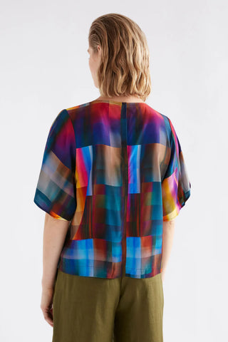 The Byde Top is a classic silhouette with thoughtful design details. Printed in the vibrant Ekko Print, this top features short raglan, tulip sleeves that elongate and flatter the arm, while providing coverage. The simple crew neckline and centre back neck placket with press stud closure a provide a clean silhouette for the print to take centre stage. Crafted from a silky soft ECOVERO™ viscose blend that is floaty and lightweight with a matte sheen. A regular fit bust flows into a slightly relaxed A-line hem. Pair with tailored pants for desk-to-dinner outfitting or wear tucked into the Jopa Pant for evening styling.