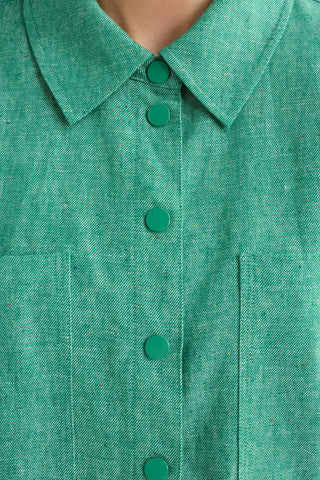 Make a statement in the Alpah Shirt, crafted from a speciality, speckled French linen and cotton blend. This boxy style, short sleeve shirt features two front chest pockets, wide sleeves with slightly dropped shoulders, back yolk seam and tonal matching press stud buttons. The linen-cotton blend provides natural breathability with soft structure that softens with wear. Pair with the matching Alpah Pant for a statement tonal suit or with denim for a more casual look