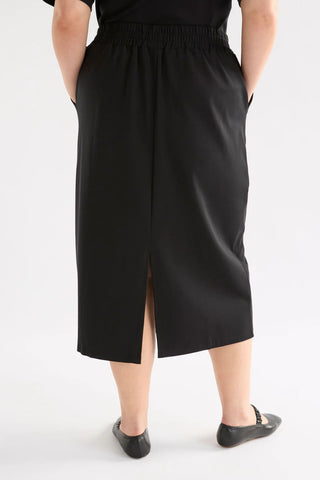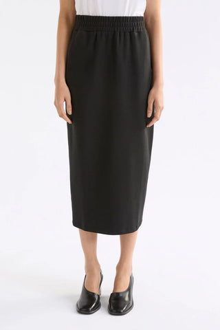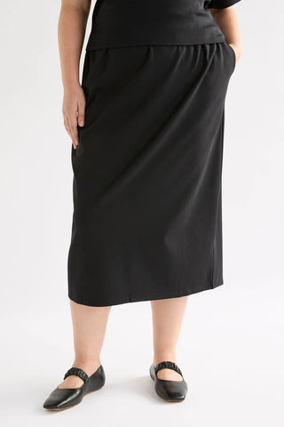 The Mana Skirt combines comfort and sophistication in one piece. This classic pencil skirt is crafted in a mid-weight, organic cotton jersey, elastane blend with a soft density that flatters the body. This mid-rise design with a wide, gathered, elasticated waistband ensures all day comfortable and ease. Perfect for desk to dinner outfitting.
