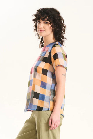 Our signature Olga Top is one of our best-sellers. A little more modest and roomy than the tee, it is a straight cut, with a short sleeve, crew neck and a box pleat at the back to give it more fullness and movement.